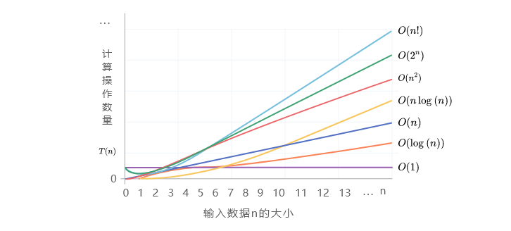简而言之,时间复杂度$O(f(n))$表示算法的运行时间与$f(n)$的增长趋势相同,或者说算法的运行时间不会超过$f(n)$的某个常数倍。